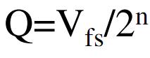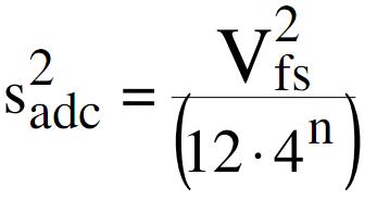Ma vediamo come si comporta un quantizzatore reale all’aumentare del numero di bit utilizzati. Detta Q l’ampiezza del singolo intervallo, V(fs) la tensione di fondo scala e S(adc) la varianza del rumore di un quantizzatore ideale in cui compare il solo rumore di quantizzazione, si ha che