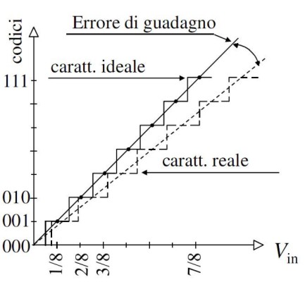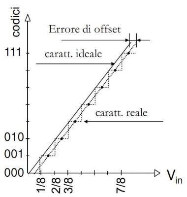 Il primo di questi errori è detto ERRORE DI OFFSET eprovoca una traslazione della caratteristica di conversione parallelamente a sé stessa, verso destra o verso sinistra,come mostrato in figura