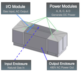 Per potere fornire quantitativi di energia consistenti sono stati realizzati dei server, overo dei grossi blocchi di fuel cells racchiusi in unità dalle dimensioni di piccoli containers, che collegate tra di loro possono fornire la scalibilità in termini di potenza ed energia richiesta dalle utenze: