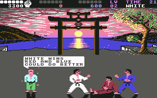 Il progresso nel gioco avviene sulla stessa scenografia, nella stessa identica modalità: tre forsennati che si picchiano come fabbri, cambiando ogni tanto di colore alla cintura. Ogni due quadri superati, il giocatore deve affrontare un bonus game, consistente nel parare dei palloni che gli rimbalzano incontro, o nel calciare bombe che compaiono al suolo, prima che esplodano (questa modalità è assente nella versione C64).