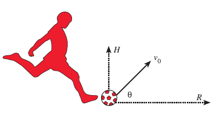 Anche in questo caso è possibile determinare il punto di arrivo della palla e la sua velocità utilizzando semplici equazioni del moto parabolico, inizialmente descritto da Galileo. Per descrivere il sistema in modo più preciso, però, si deve introdurre anche qui la resistenza del fluido, complicando un po’ le cose.
