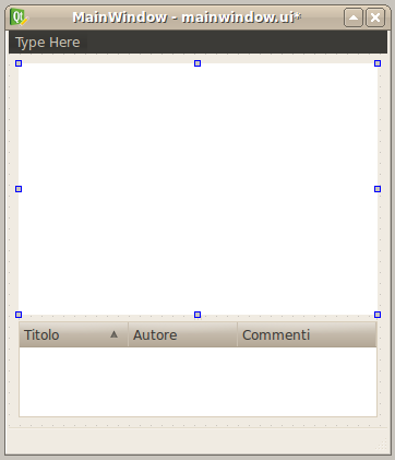 Per prima cosa riapriamo il designer ed aggiungiamo una webview. Personalmente ho scelto di inserire i due widget (treewidget e webview) in uno splitter ma ovviamente potete organizzarli come preferite.