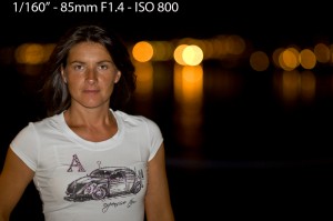 Avendo la tendenza a lavorare con l’ obbiettivo a tutta apertura è opportuno valutare bene i difetti che la propria lente ha quando si lavora a tutta apertura , nell’ ennesimo ritratto di mia moglie basta andare a posare l’occhio sui brillantini della maglietta per rendersi conto di come l’ 85mmF1.2 L MKII lavorando a tutta apertura presenti una nutrita propensione al fringing (vi garantisco che i brillantini sono perfettamente bianchi e non violetti).
