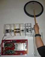 Tutto questo presuppone di avere una dote fondamentale: il ritmo dentro. Ma pare che ci sia qualcuno convinto che la tecnologia può ovviare anche a quello, e insegnarti “a forza” quella che secondo me è una dote, o almeno una predisposizione. Graham Grindlay ha costruito un macchinario capace di insegnare a novizi batteristi ad andare a tempo con una sequenza musicale, forzando il movimento del braccio; all’inizio era partito con bacchette magnetiche, ma poi si è accorto che far muovere il braccio, imprigionato dentro a quella macchina un po’ infernale a vedersi, era più educativo.