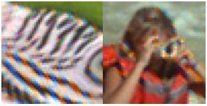Dalle due immagini mostrate qui sopra, disposte sempre nel medesimo ordine, si può vedere come il pattern bayer sia meno sensibile all’aliasing in prossimità dei bordi in particolare e nelle aree dove c’è una brusca variazione del gradiente cromatico. Anche questa situazione è migliorabile facendo uso di algoritmi di denoising in post processing e/o di filtro antialising fisico posto davantio al sensore.