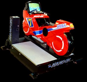SEGA le aveva pensate davvero tutte, fornendo un cabinato che riproduceva piuttosto fedelmente la migliore amica dei centauri, la moto ovviamente.