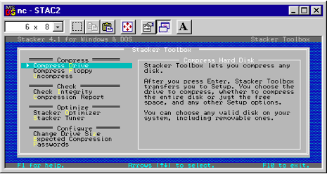 Lo scettro della categoria apparteneva a Stacker di Stack Electronics, che per primo si era affacciato sul mercato conquistando l’attenzione di utenti e software house, in particolare quelle produttrici di sistemi operativi DOS LIKE. Stacker utilizzava l’algoritmo Lempel-Ziv-Stac (LZS o Stac Compression), ancora oggi sfruttato per le comunicazioni di rete e fatto proprio dal CISCO IOS Stack. L’LZS garantiva un ottimo incremento di spazio, vicino al limite teorico del 100%, senza un degrado significativo delle performance.