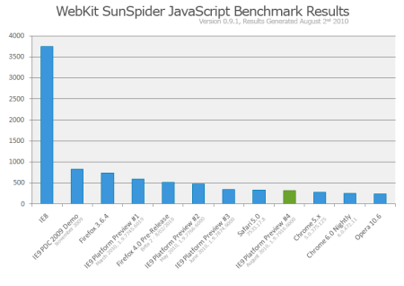 Dalla prima Platform Preview all’ultima c’è stato un raddoppio delle prestazioni del nuovo motore Javascript denominato Chakra integrato in Internet Explorer 9. Tale miglioramento è stato possibile sia realizzando un nuovo motore Javascript, sia integrandolo direttamente all’interno del browser, senza accedergli come componente esterna mediante COM.