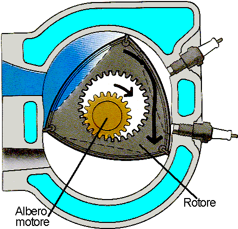 Il motore Wankel, ideato nel 1950 da Felix Wankel, utilizza un particolare “pistone” rotante a forma grossomodo triangolare con i lati curvi, il cui rotolamento in una camera di forma opportuna, permette di realizzare le varie fasi canoniche di un motore, ovvero l’aspirazione della carica, la compressione e la combustione della stessa ed infine lo scarico dei gas combusti.