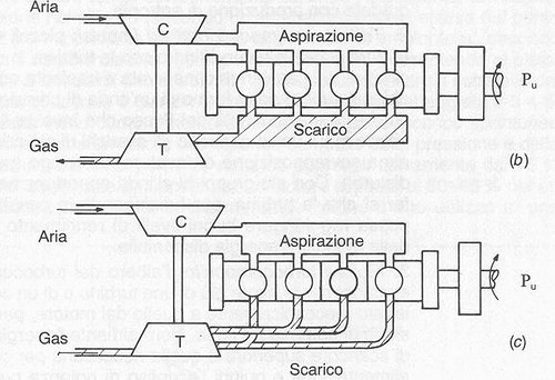 Un secondo problema rappresenta la difficoltà di “accoppiamento” tra il sovralimentatore ed il motore, in quanto si tratta di accoppiare una macchina dinamica, caratterizzata da condizioni di funzionamento tipiche di queste macchine, con una macchina volumetrica quale è il motore, e su questo aspetto si sviluppano differenti soluzioni in base alle necessità di ottimizzazione del funzionamento dell’insieme motore-sovralimentatore.