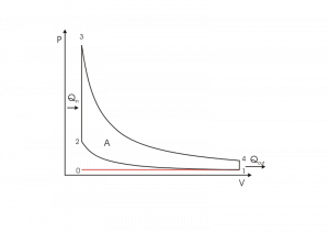 Proseguendo idealmente le curve 1-2 e 3-4 sulla destra fino al loro congiungimento. si individua nell’area racchiusa tra di esse e la curva 4-1 il lavoro ancora estraibile dall’espansione dei gas combusti.