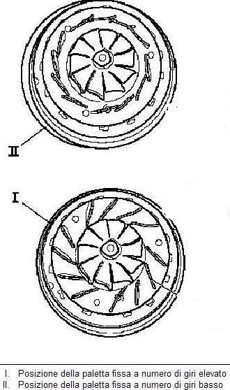 Ina soluzione impiegata per migliorare le prestazioni ed il rendimento del turbocompressore consiste nell’impiego di una turbina a geometria variabile.