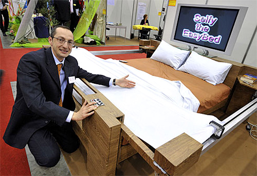 Enrico Berruti è un simpatico signore che ha munito un normale letto a due piazze di fermagli che scorrono lungo guide di metallo poste ai lati del materasso; quando le lenzuola sono perfettamente tirate, le guide si abbassano automaticamente lasciando un letto in ordine.