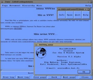 Nexus aveva un grosso limite: il legame profondo alla piattaforma NeXT. Bisogna attendere Aprile del 1992 con il rilascio di Erwise, sviluppato da un gruppo di studenti presso l’Università della Tecnologia di Helsinki (Kim Nyberg, Kari Sydänmaanlakka, Teemu Rantanen e Kati Borgers) per avere il primo browser grafico per i sistemi Unix, sicuramente molto più diffusi.