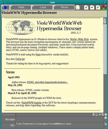Qualche mese dopo, Pei-Yuan Mei presenta ViolaWWW che annovera caratteristiche di tutto rilievo, come: gestione integrata della grafica, scripting e gestione di piccole animazioni. Come Erwise anche ViolaWWW sfrutta il sistema grafico X Windows di Unix.