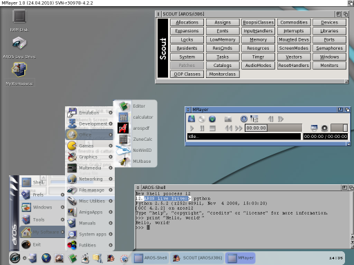 Se consideriamo che tutto questo materiale aggiuntivo (ci tengo a sottolinearlo) occupa rispettivamente 156 (x86) e 204MB (x86-64) nelle ISO, possiamo capire quanto snello sia AROS a livello di s.o. (parliamo di 23-25MB in tutto, incluso GRUB che da solo si “mangia” circa 2,7MB) e, quindi, in linea con quello che ci aspettiamo da un parente stretto di AmigaOS.