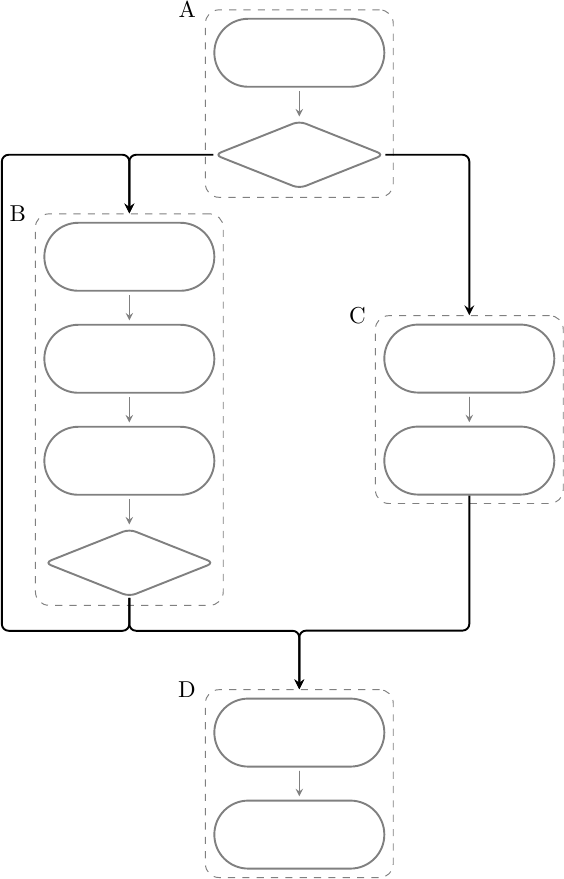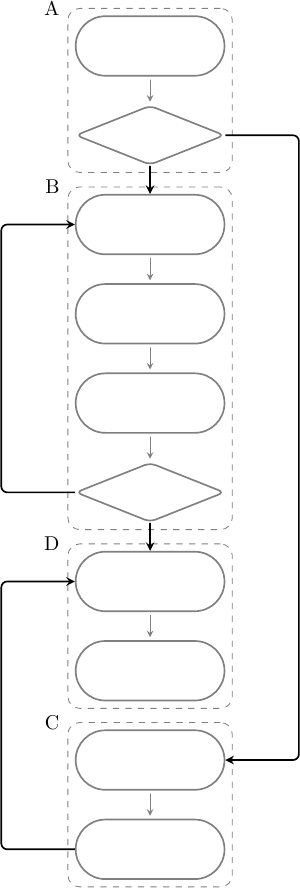 In questo caso verrà eseguito il blocco A, quindi B o C, e infine D; B è un loop e può essere eseguito una o più volte. Per disporre il programma in memoria è necessario “linearizzare” le istruzioni, cioè disporre i blocchi uno dopo l’altro sequenzialmente in un qualche ordine, ad esempio: