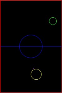 Chiusa questa piccola parentesi possiamo notare qualche piccola differenza nella funzione run (dalla linea 74). Per prima cosa abbiamo tolto la gravità (cioè non l’abbiamo settata, l’ho lasciata come commento) e abbiamo aggiunto il damping, cioè lo smorzamento, e modificato lo static_hash e l’active_hash per una migliore reattività. Naturalmente valora più grandi, rendono più sensibile e realistico il movimento, aumentando le risorse richieste per far girare il gioco, quindi non eccedete troppo perché questo è solo un file di esempio e ci sono solo due corpi da gestire. Abbiamo aggiunto di seguito le linee, la palla e il mouse (la nostra mazza.)
