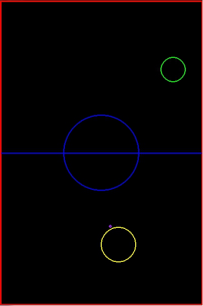 Dalla linea 80 possiamo notare come questo approccio sia completamente differente. In questo caso, il puntatore del mouse è indipendente dalla mazza (che rimane mouse_shape), ma i due corpi sono collegati da un DampedSprig, cioè una molla che ha un coefficente di smorzamento. In questo modo, nel loop dei controlli, dobbiamo solo aggiornare la posizione del puntatore (point_shape) perché la mazza (mouse_shape) è legata ad esso.