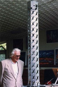 Zuse vicino al prototipo (in miniatura) dell’Helix-Tower