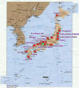 Il Giappone conta 54 reattori nucleari suddivisi in diversi impianti dislocati principalmente lungo la costa, per il motivo principale che, trattandosi di impianti a vapore nel loro sistema di conversione di energia termica in elettrica, necessitano di acqua per condensare il vapore (una spiegazione esaustiva degli impianti a vapore si trova nel link indicato) senza alcun miscelamento tra il fluido refrigerante ed il fluido da condensare (fortemente desalinizzato e purificato alla fonte per non danneggiare la turbina).