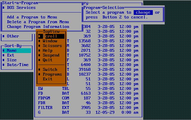 Rilasciato ad agosto 1984, TopView assume subito un ruolo prettamente “politico” visto che Big Blue lo utilizza come deterrente per convincere Microsoft a realizzare un nuovo sistema completamente svincolato dal vecchio DOS (leggasi OS/2), punzecchiandola nel suo settore naturale, in quanto ipotetico concorrente di Windows.