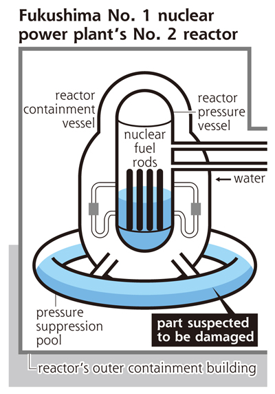 Un altro problema è causato dal reattore 2. Sembra infatti che parte della piscina di raffreddamento sotto il reattore sia stata danneggiata, come si vede dalla figura 2. La camera di contenimento rimane però intatta e quindi fuori da rischi di contaminazione dell’ambiente esterno.
