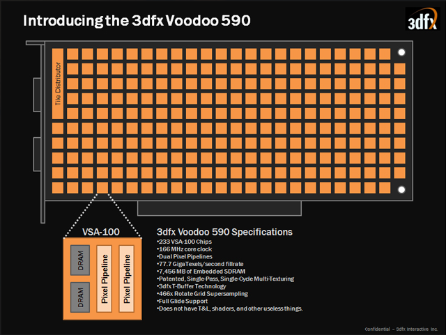 Negli ultimi dieci anni, un gruppo di veterani ex-3dfx ha condotto una sorta di doppia vita. Nel giorno hanno lavorato come dipendenti di NVIDIA al design, la costruzione e il marketing dei processori grafici GeForce. Nel loro tempo libero, a con il tacito consenso dell’azienda, hanno lavorato a una scheda grafica basata su tecnologia 3dfx. Dopo dieci anni di sviluppo segreto, sono finalmente pronti a mostrare al mondo ciò che hanno creato.
