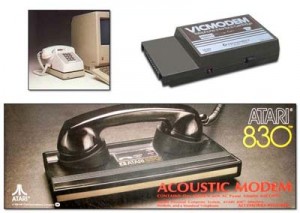 Modem agli inizi degli anni ’80 (Apple Modem 300, Commodore Vicmodem e Atari 830)