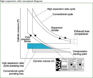 I motori a ciclo Otto e ciclo Diesel precedentemente esposti presentano la caratteristica comune di possedere il rapporto di compressione e di espansione identici, soluzione che permette di massimizzare il riempimento sfruttando al meglio il volume disponibile, ma dal punto di vista termodinamico risulta meno efficiente rispetto ad una soluzione che preveda un rapporto di espansione superiore a quello di compressione.
