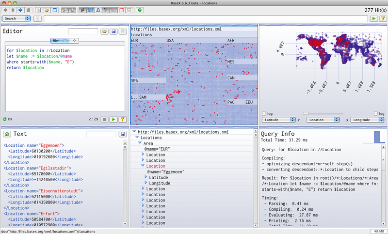 La GUI di BaseX 6.6, uno dei database XML based più noti