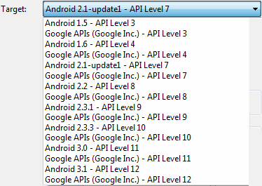 Chi volesse scrivere un’applicazione per Android 1.0 e 1.1 (API Level 1 e 2, rispettivamente) rimarrà deluso: non è, infatti, possibile selezionare l’apposita versione delle API, per cui Android 1.5 rappresenterà necessariamente il requisito minimo.