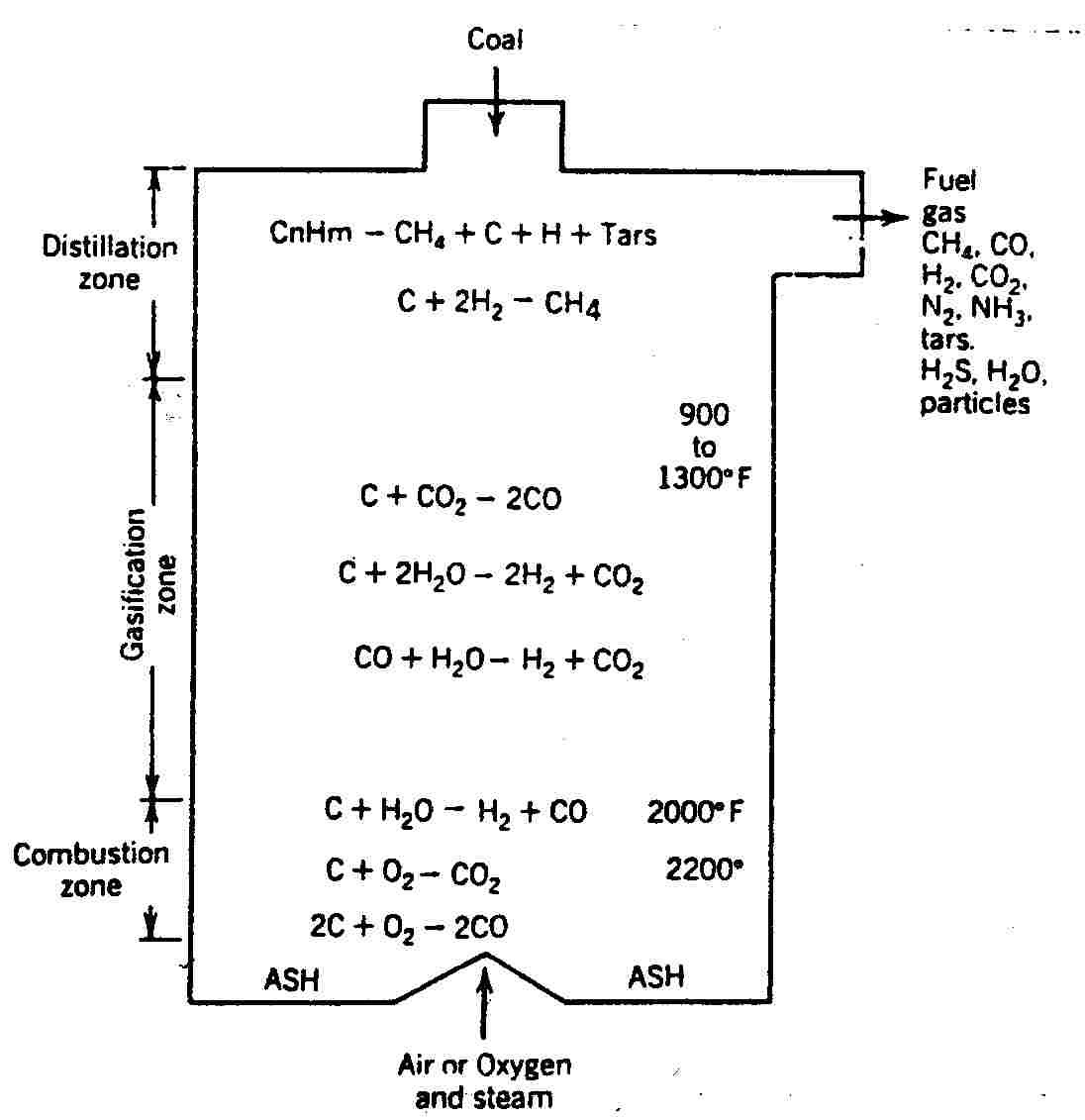 La gassificazione segue un processo articolato in diverse reazioni, le quali si sviluppano secondo il seguente schema: