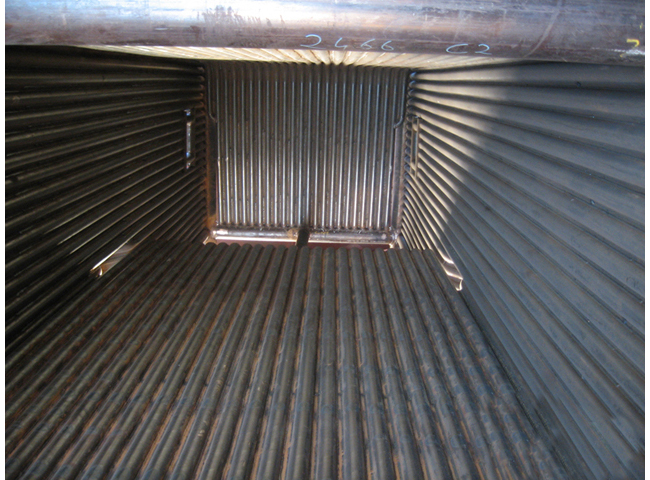 Come già detto, la camera di combustione in un termovalorizzatore rappresenta anche lo scambiatore di calore principale, pertanto la sua costruzione viene eseguita mediante la saldatura di speciali tubazioni all’interno delle quali scorre il fluido operativo, il tutto in maniera perfettamente analoga a quanto presente in un tradizionale impianto termoelettrico a vapore, così come evidente nella seguente immagine, rappresentativa dell’insieme dei fasci tubieri, benché l’immagine non rappresenti una camera di combustione: