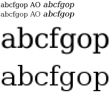 Font con Hinting (righe 2 e 4) e senza Hinting (righe 1 e 3)