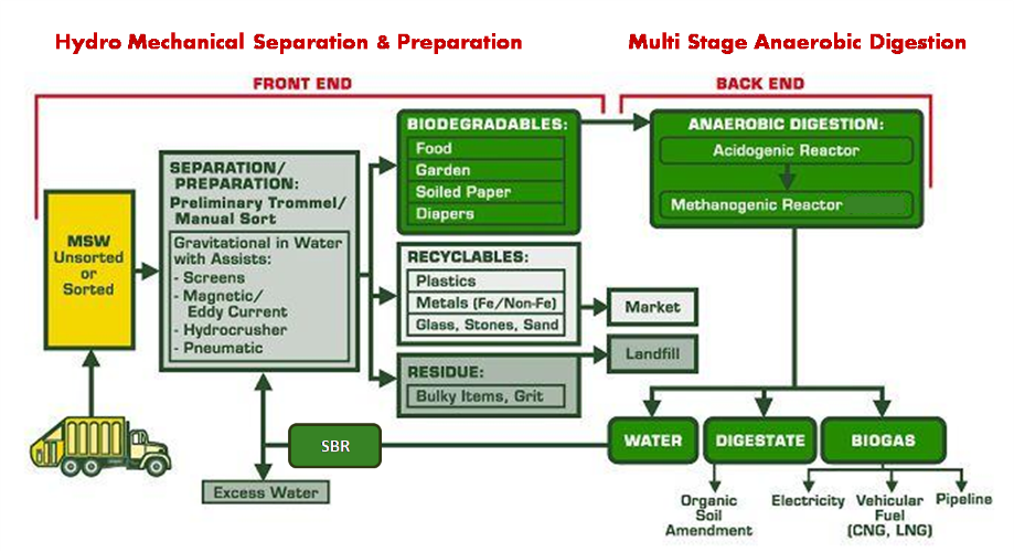 Tale processo, sviluppato dalla Global Renewables e rappresentato in breve nella seguente immagine, consiste in una prima fase di separazione ad opera di un dispositivo indicato come ResourceSort Technology sul quale è pendente un brevetto industriale.