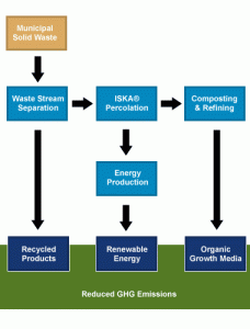 Tale processo di separazione suddivide il materiale per categorie e le rende disponibili per i processi successivi, i quali consistono principalmente nell’invio dei materiali riciclabili a tale applicazione mentre la parte rimanente viene inviata all’unità di percolazione ISKA, basata su una tecnologia brevettata della quale la Global Renewables risulta licenziataria in vari parti del mondo.