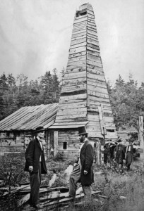 Probabilmente molte applicazioni e virtù saranno state attribuite al petrolio, ma per trovare delle applicazioni “moderne” così come le conosciamo noi bisogna attendere, come già detto il 1859, precisamente il 27 agosto, anno nel quale venne eretto (ad opera di Edwin Drake) a Titusville in Pennsylvania il primo pozzo petrolifero, del quale si può vedere un’immagine storica qui sotto: