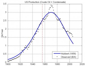 Come già detto Hubbert riuscì a prevedere il picco della produzione del petrolio degli Stati Uniti applicando il modello da lui sviluppato, e si può vedere questo risultato nel seguente diagramma: