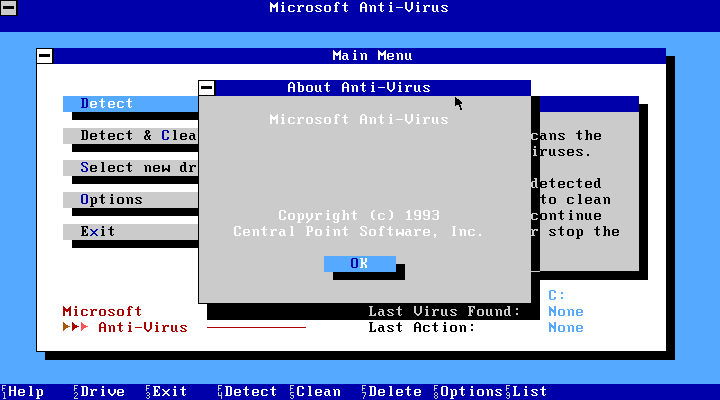 MS Anti-Virus (MS DOS 6.20) derivato da Central Point Antivirus