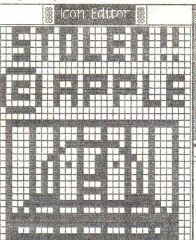 Come le icone che successivamente caratterizzeranno il Mac, la “Stolen from Apple” viene realizzata da Susan Kare, mentre la sua codifica/compressione è affidata a Steve Capps.