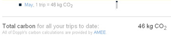 Nel mese di maggio, nel mio unico spostamento programmato su Dopplr, ho percorso circa 200 km in auto e consumato all’incirca 46 Kg di CO2. Non mi sarei mai aspettato una valore così alto.