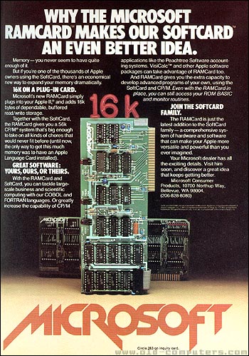 Per potenziare SoftCard, Microsoft propone anche RAMCard, un upgrade di ben 16KB di RAM da inserire in uno degli slot di espansione dell’Apple II. Nonostante la memoria aggiuntiva sia pensata per essere utilizzata dal CP/M, alcuni programmi nativi (come VisiCalc) possono utilizzarla se appositamente fixati.