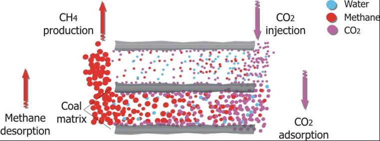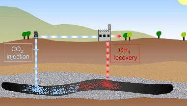 Utilizzando CO2 al posto del vapore è possibile ottenere un duplice scopo: estrarre il metano e sequestrare la CO2 nel sottosuolo in un unico processo, infatti la CO2 iniettata nel sottosuolo viene a sua volta adsorbita dal carbone con il conseguente rilascio del metano, processo che viene favorito dalla “preferenza” del carbone verso la CO2 rispetto al metano.