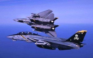 (F-14 “Tomcat” – sono visibili i missili a lunga gittata “Phoenix” collocati sotto la fusoliera e nelle slitte della parte fissa delle ali)
