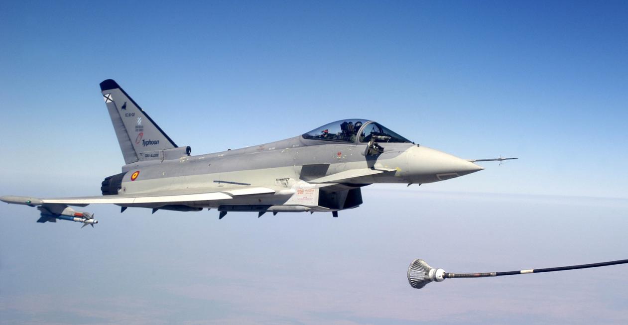 (Eurofighter Typhoon in volo durante l’approccio alla fase di rifornimento)