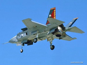 (Lockheed-Martin F-35 “Lightning II” in volo – si nota il ventre dell’aereo)