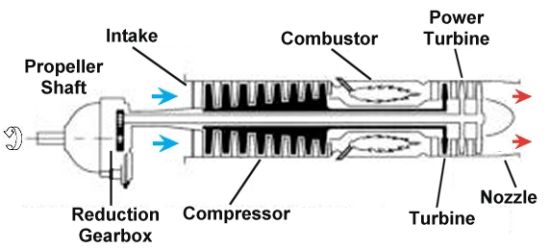 Un motore turbo-elica non è altro che una turbina a gas (delle quali ne abbiamo parlato parecchie volte riguardo gli impieghi civili per la produzione di energia elettrica) opportunamente progettata per l’impiego aeronautico alla quale viene collegata, mediante un opportuno riduttore, un’elica a due o più pale (generalmente sino a sei) della quale diventa il motore.