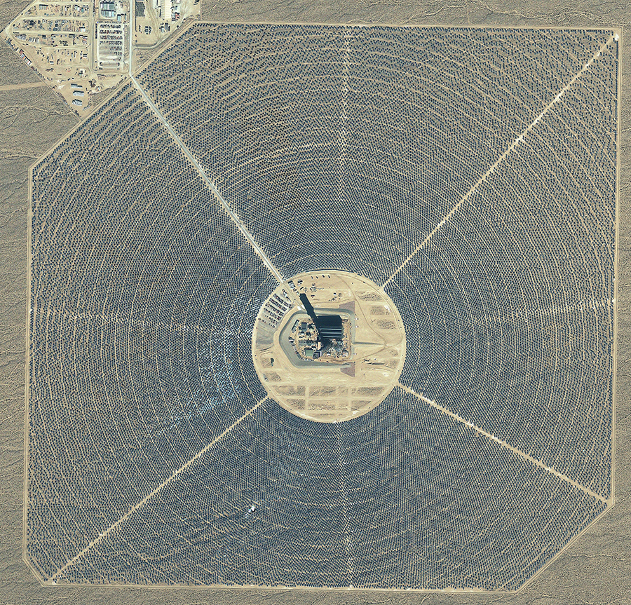 Tale impianto è costituito in realtà da tre impianti a torre solare, e l’estensione complessiva è di circa 3500 acri, ovvero circa 1416 ettari (14.16 km2).
