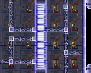 Il sottolivello Boss di Factory aveva l’idea di fare entrare la navetta in un gigantesco montacarichi: due enormi porte si chiudevano davanti e dietro ed un contatore mostrava i piani scendere (non realistico, ma molto coreografico); una volta arrivata la nave si sarebbe trovata in un immenso spazio sotterraneo attraversato occasionalmente da scariche elettriche, fino al boss che e’ un enorme robot da assemblaggio che la avrebbe circondata.